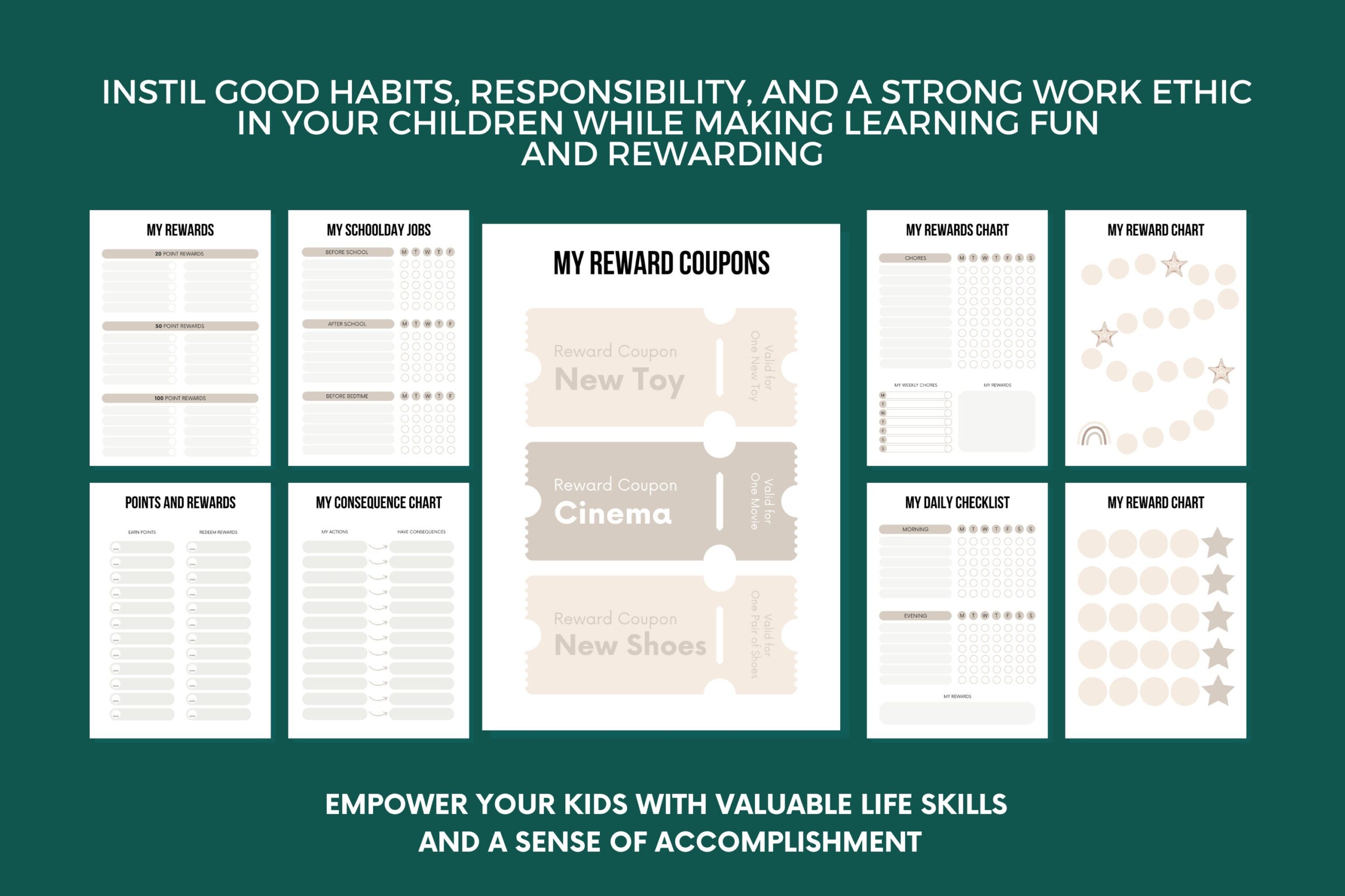 Kids’ Rewards Chart | Printable Bundle 31 Pages | Daily Tasks, Screen Time Rewards, Chores and Responsibilities